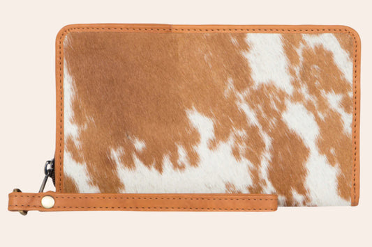 Cowhide Clutch Bag With Turquoise Stonework and Fringes
