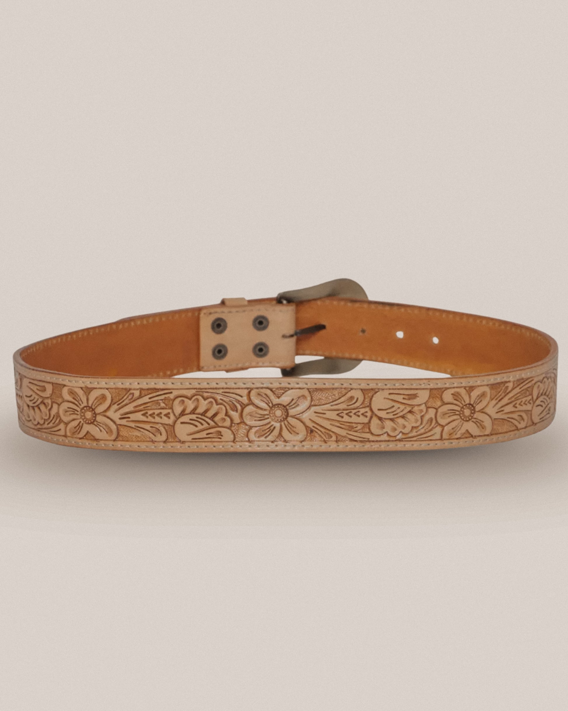 This 3.5cms wide beauty with intricate hand carving details is the focal point to your outfit. A classic design, the hip sitting tooled leather belt is press studded so that the buckle can be easily changed to fit custom buckles. Available in S, M, L and XL sizes..